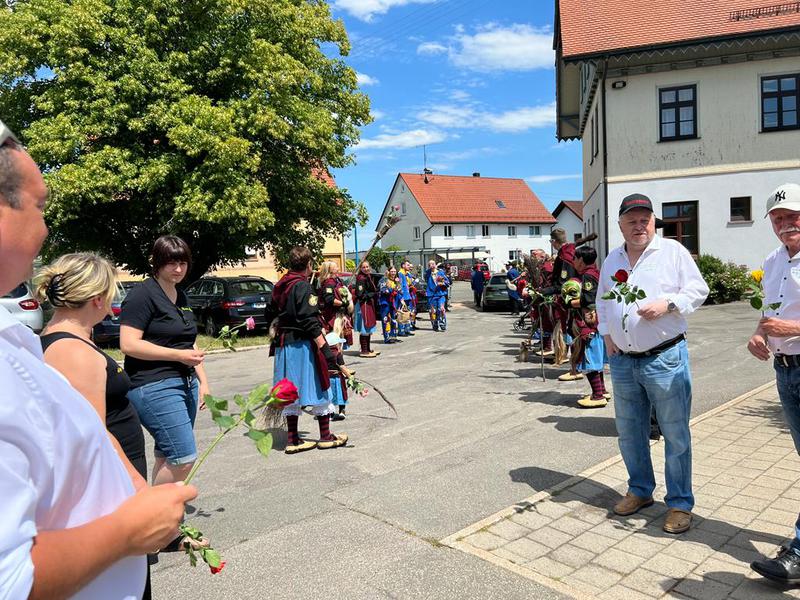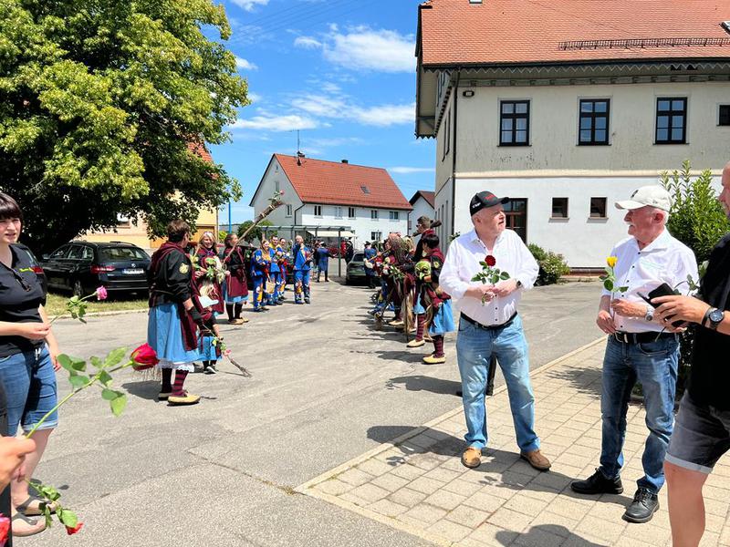 Eine Abordnung der Freien-Narrenvereinigung gratuliert recht herzlich und steht Spalier.